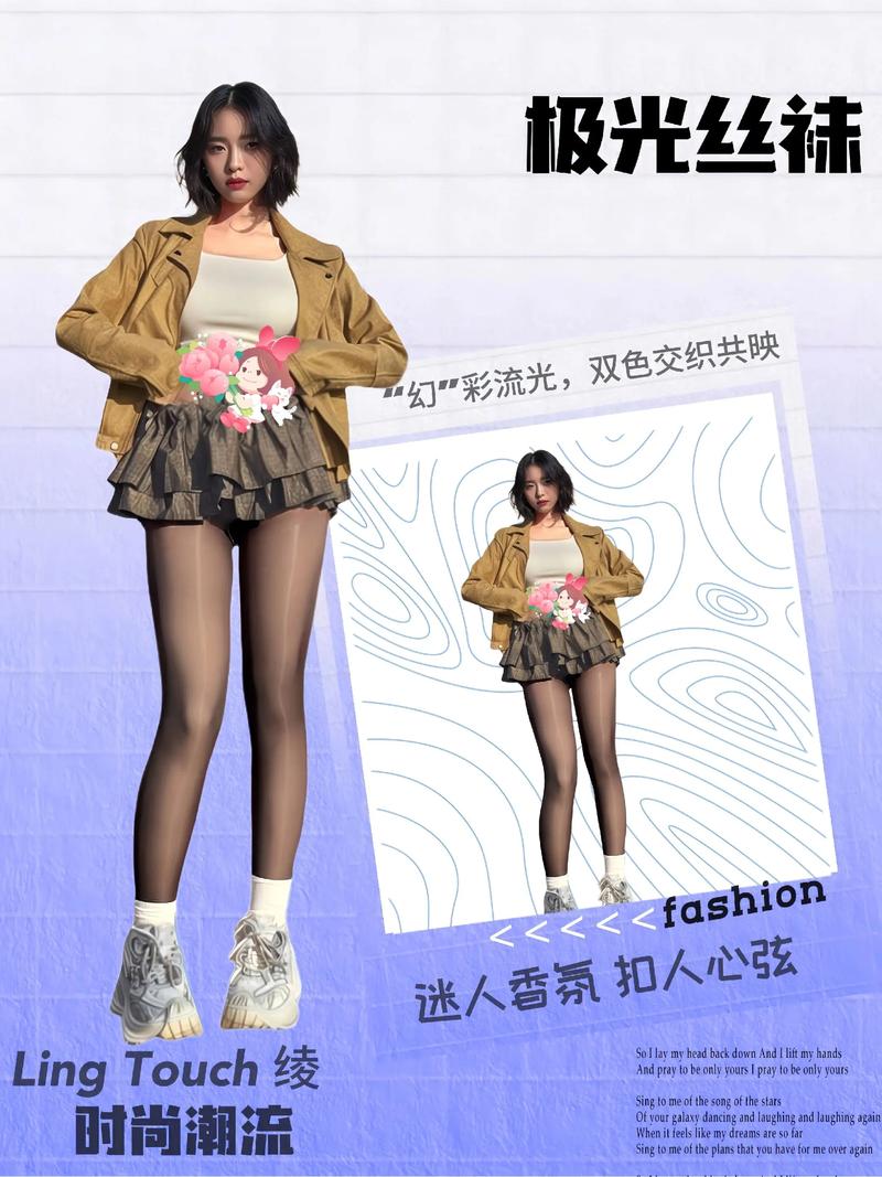 - 极光丝袜自带细腻油亮的光泽感,在自然光下会折射出流动的光泽,比普通黑丝更有高级感和“存在感”,是整套造型的视觉核心。