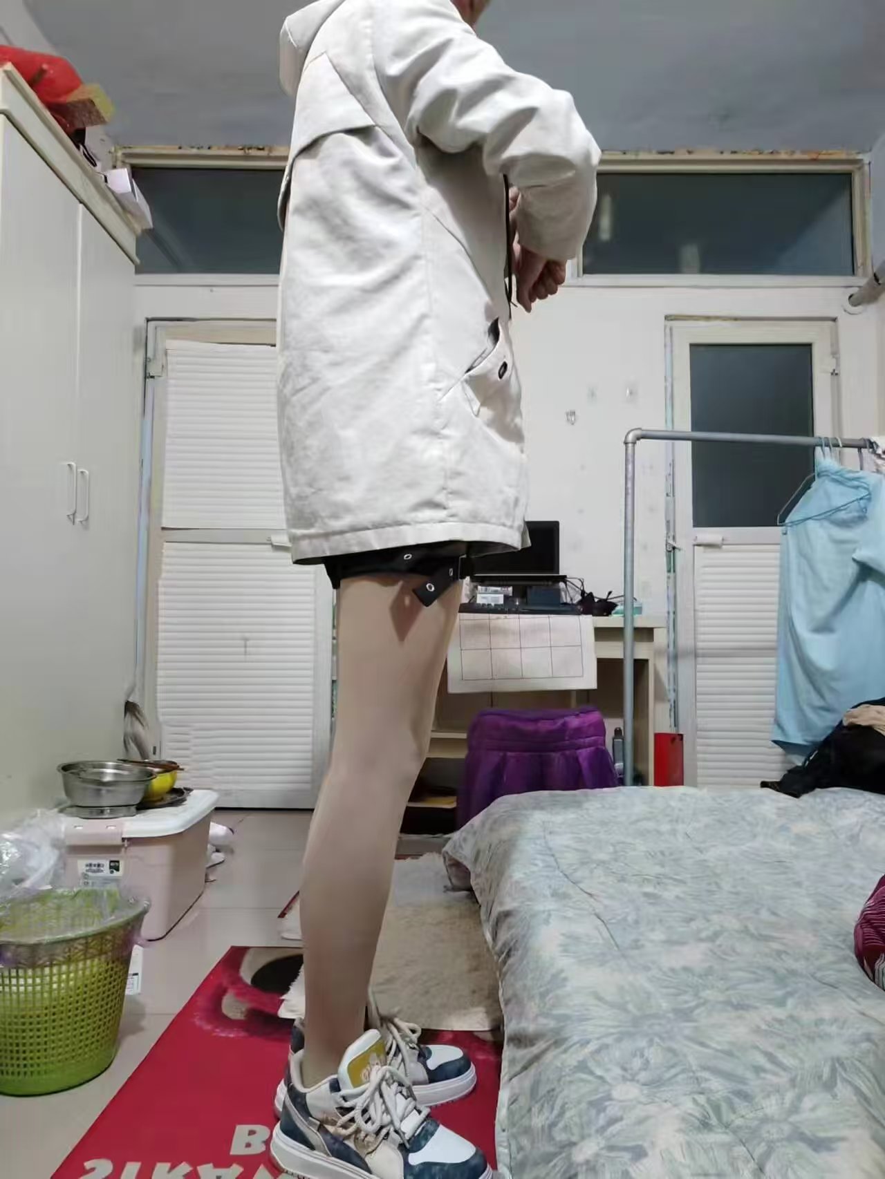 男生穿丝袜-风衣搭配黑色短裤肉色超薄丝袜2
